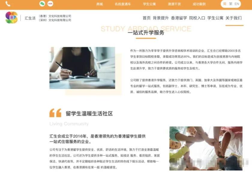 汇生活成立于2016年,总部位于香港,主要从事学生住宿服务、物业管理服务以及教育咨询服务的推荐业务,