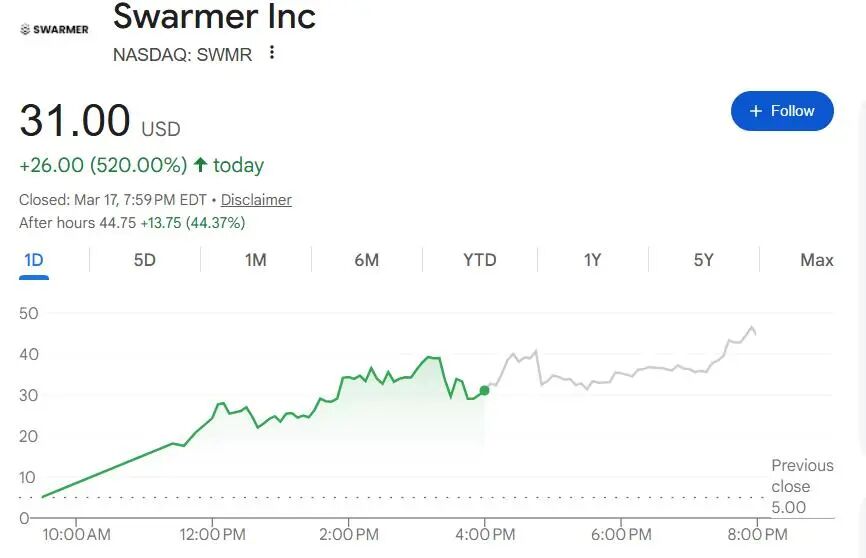 当地时间2026年3月17日,专注AI驱动无人机蜂群控制系统的防务科技企业Swarmer Inc.(股票代码:SWMR)正式于美国纳斯达克挂牌上市,成为近期美股IPO市场最受关注的明星新股。
